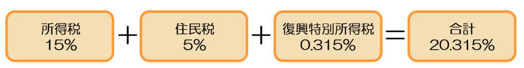 所得税15%、住民税5%、復興特別所得税(2037年まで)0.315%