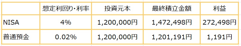 NISAでの投資と普通預金の利益の差は271,307円になります!